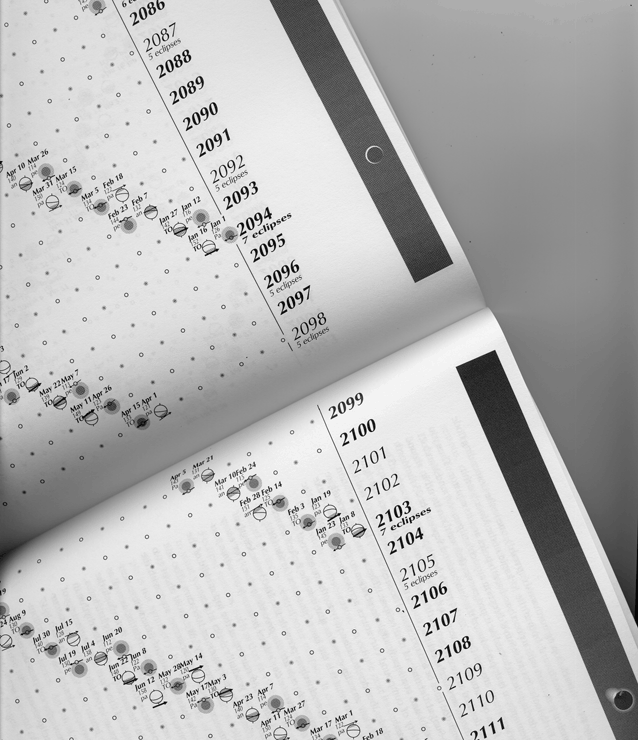 This book, now in an enlarged 5th edition, methodically explains why eclipses of the Sun and Moon happen, their intricate patterns in time and space - and why they are so exciting. There are page-spreads, with dynamic globe diagrams, for examples of the main kinds of eclipse and several curious cases, such as a "broken-ring eclipse", a "geometrically tight eclipse", a "globe-skimming eclipse"; and the cross-USA total solar eclipse of August 2017. Rich illustrations, including the 12-page "bead curtain" chart of all eclipses from 1901 to 2116; "Eclipse stories" (with some cartoons); eclipses of the future; tables; index. 8½ x 11 in., 96 pages, many illustrations. 1991; 2nd edition 1991; 3rd edition 2004; 4th edition 2013; 5th edition 2016, with recent updates. ISBN 978-0-934546-74-4.
