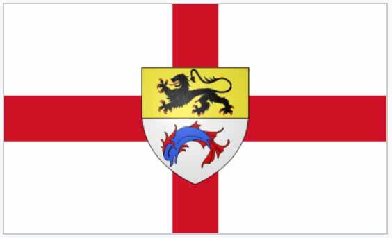 Dunkirk Jack is the flag that may be flown only by civilian craft that took part in the evacuation. It’s the cross of St. George of England “defaced” (as the heraldic language is) with the arms of Dunkirk.