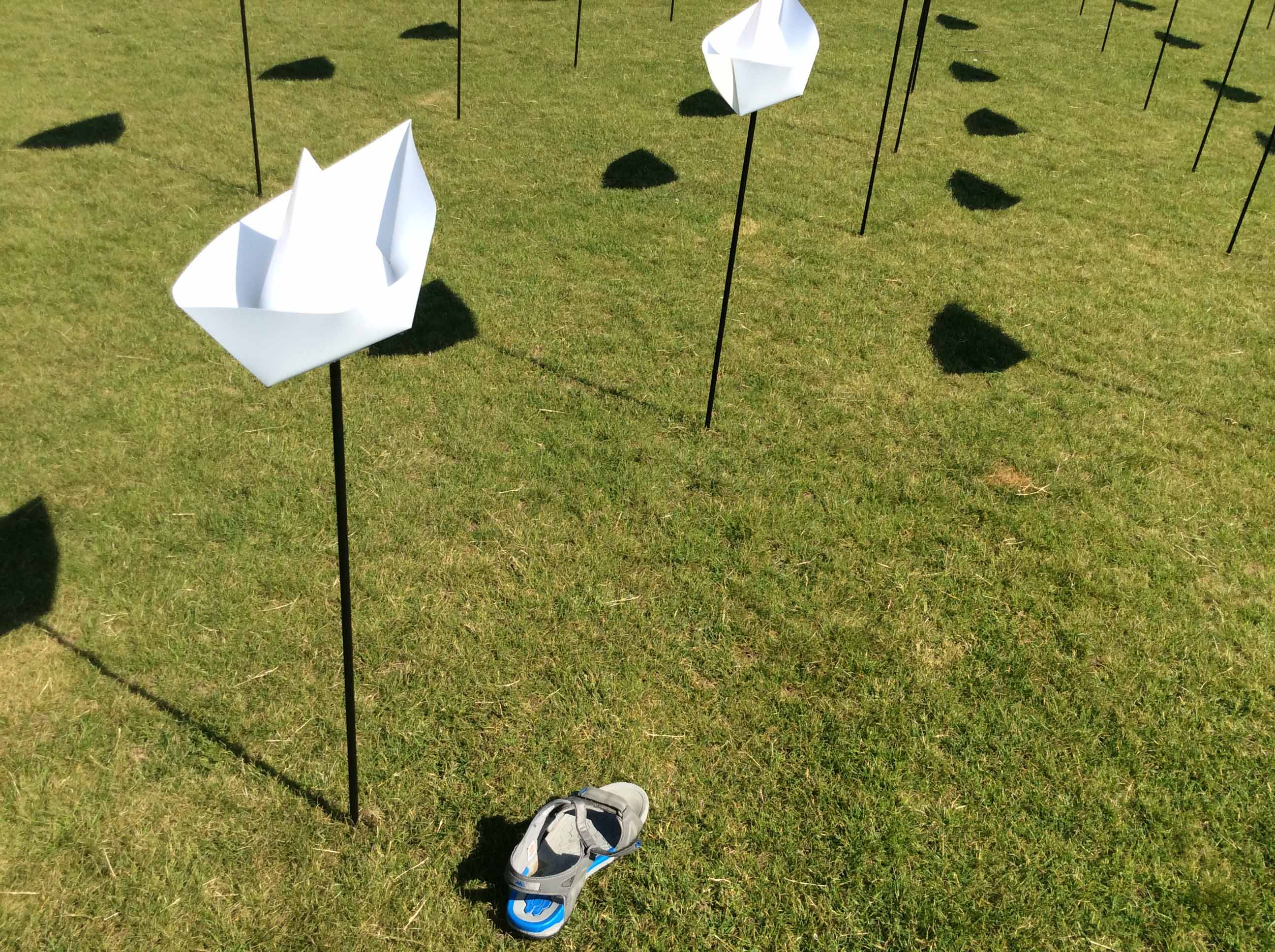 Coming nearer, I saw that they were paper boats, on three-foot stalks.