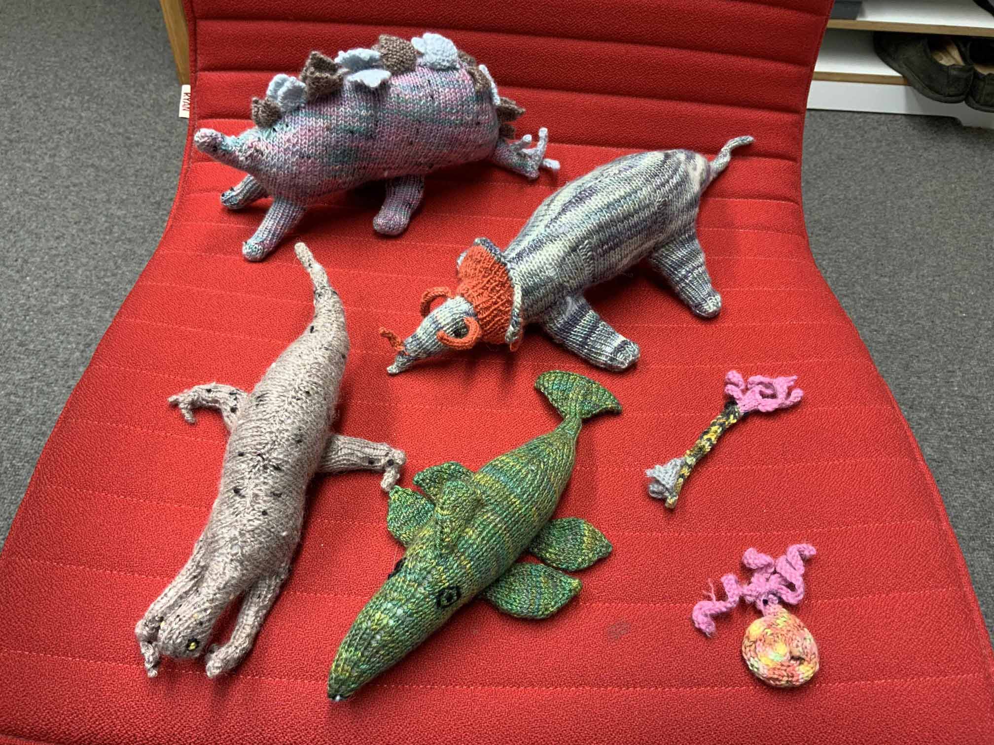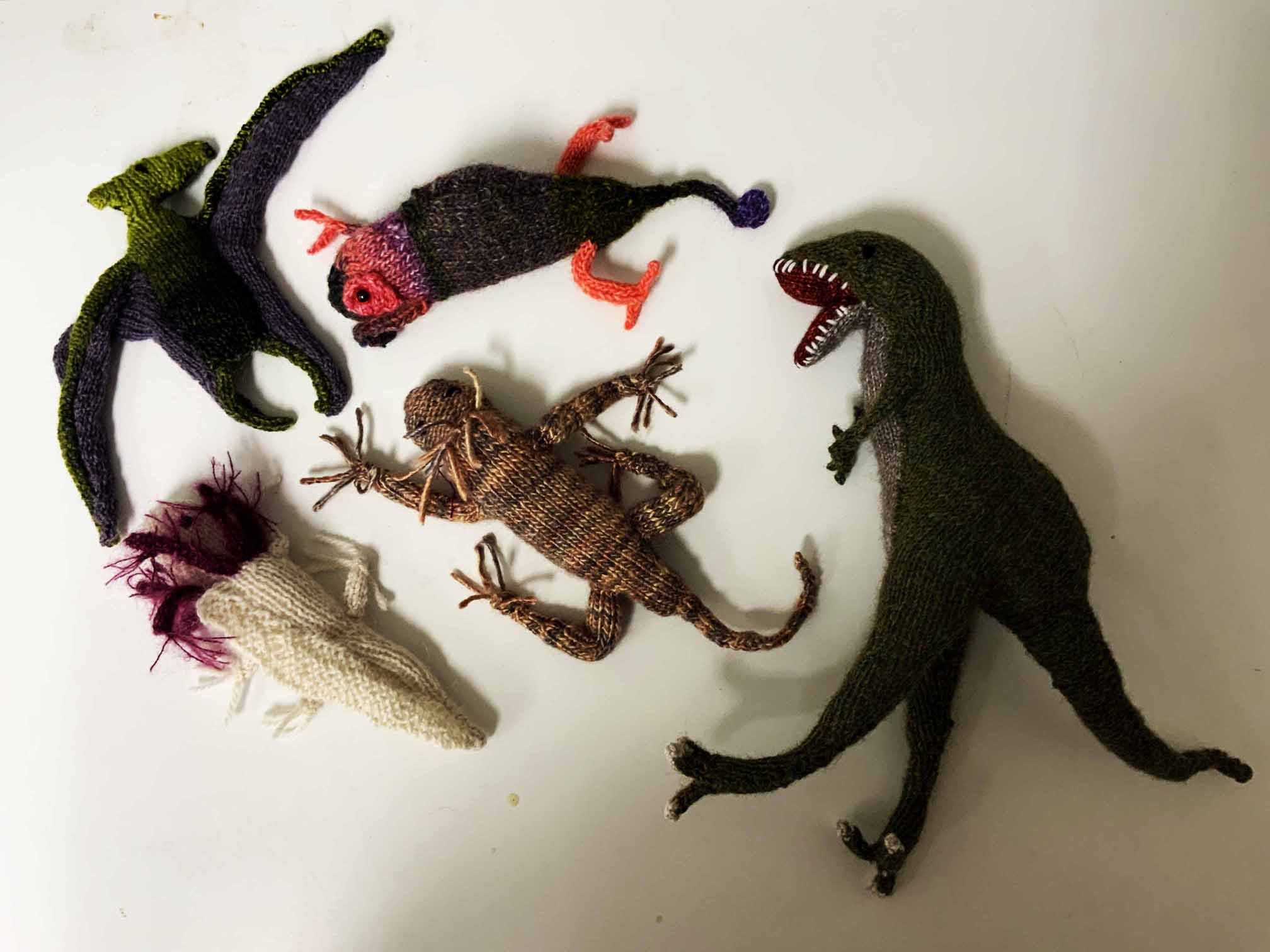 These little monsters were knitted by Jane Newby, our neighbor in Lyme Regis, which is the heart of the “Jurassic Coast” where so many ammonites and ichthyosaurs are found. I consider them masterpieces. Each took her “only” up to two evenings to creat. They are going to be sent to three-year-old Madeline in North Carolina, who likes dinosaurs. She already has several dragons, folk art from Mexico, which I may use as models for Draco in the “Pictures in the Sky” poster I hope to make on the basis of the Map of the Starry Sky.