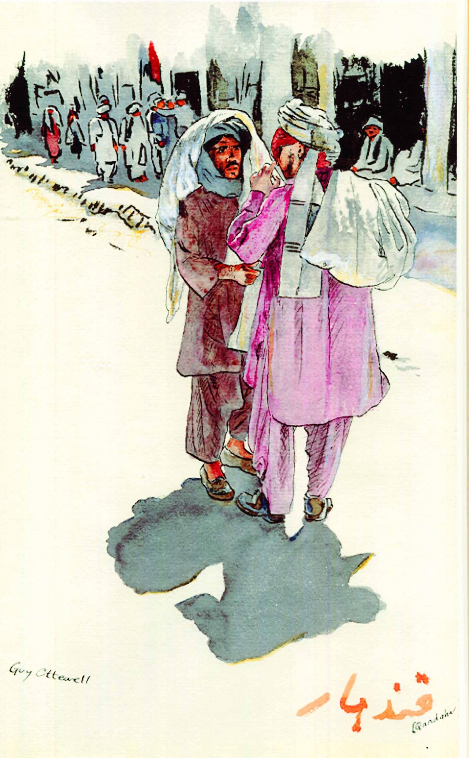 I’ve found this sketch of a street scene in Qandahar (home of the Taliban) that I made while hitch-hiking through Afghanistan back in the time of its last king.