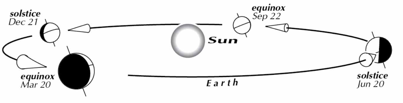 Here is one of the illustrations from the “Sun, Earth, and Sesons” section, on page 85 of the Astronomical Calendar.