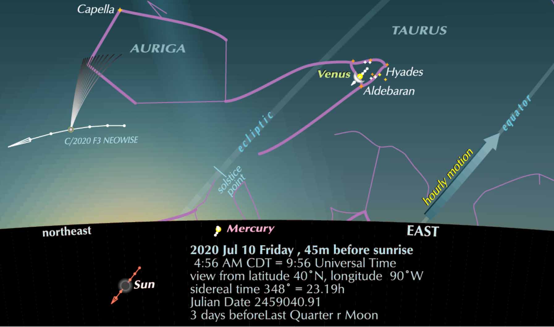 Comet NEOWISE is far enough north that you can see it at both ends of the night. Continue reading “NEOWISE in the Lynx”